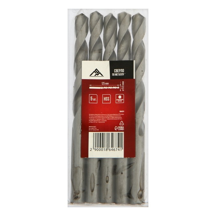 Сверло по металлу ЛОМ, HSS, цилиндрический хвостовик, 9.5 х 125 мм, 5 шт.