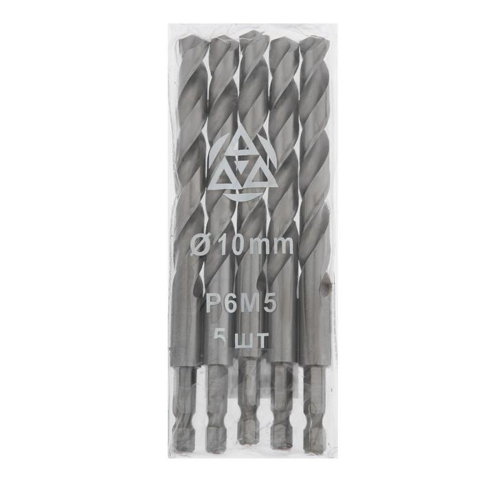 Сверло по металлу "Волжский инструмент", шестигр. хв., 10х133 мм, Р6М5, 5 шт., ГОСТ 10902-77