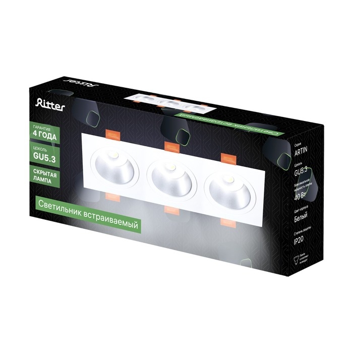 Свет-к встр, ARTIN, скрыт ламп прямоуг 260х92х40мм монтаж отв 80х230мм 3хGU5.3 Al бел 51421