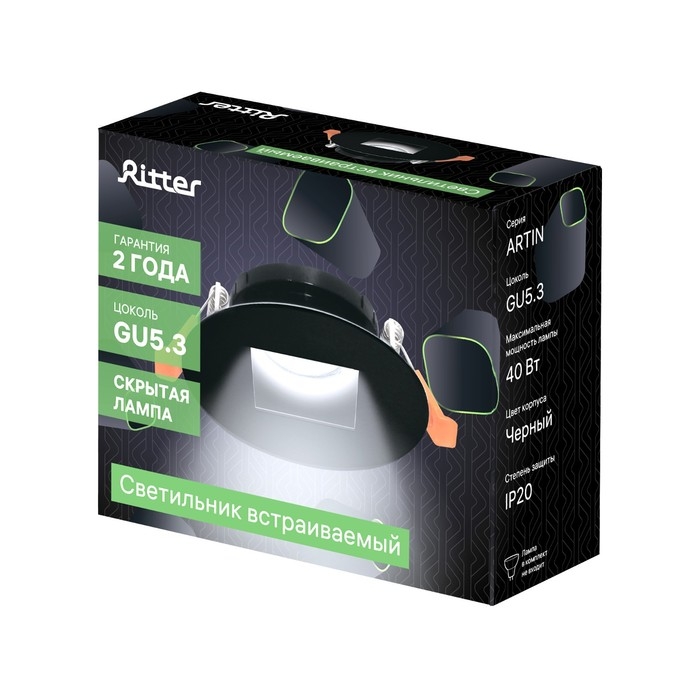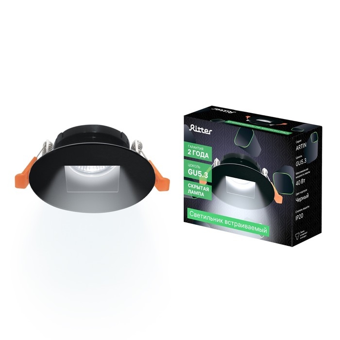 Свет-к встраив-й, ARTIN, круг 87х87х38мм монтажное отверстие 75х75мм GU5.3 Al черный 51432 9
