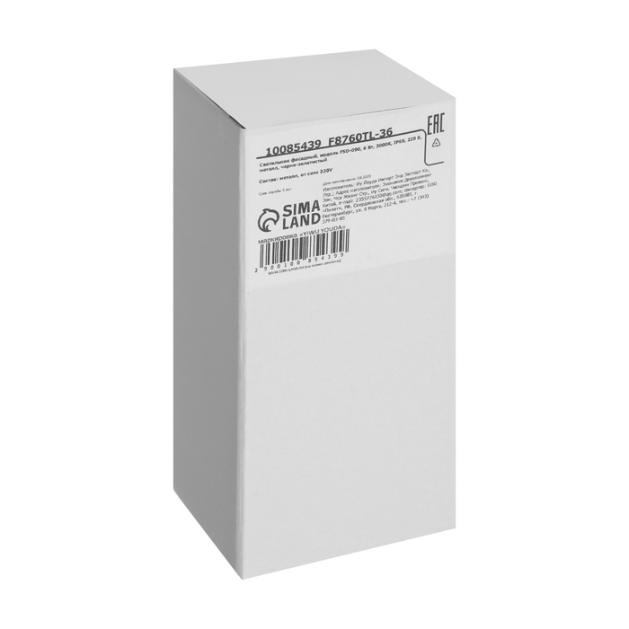 Светильник фасадный «Элегант», FSD-090, 6 Вт, 3000К, IP65, 220 В, металл, черно-золотистый 1008543