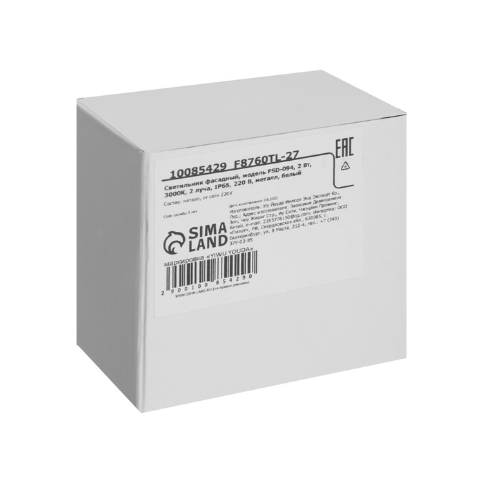 Светильник фасадный «Каскад», FSD-094, 2 Вт, 3000К, 2 луча, IP65, 220 В, металл, белый