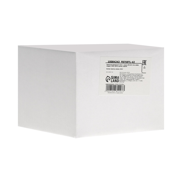 Светильник фасадный «Сити», FSD-037, 5 Вт, 4000К, квадрат, IP65, 220 В, пластик, черный