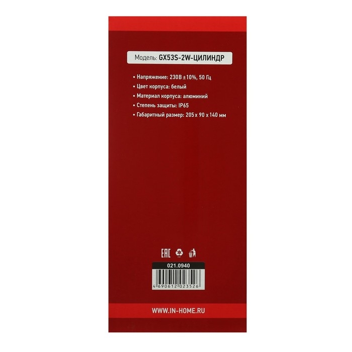Оригинальные уличные светильники IN HOME GX53S-ЦИЛИНДР предназначены для работы со светодиодными лампами GX53. Светильники предназначены для фасадной подсветки загородных домов, коттеджей, ресторанов, инсталляций. Благодаря современному дизайну, лаконичной форме и нестандартному световому эффекту, они станут идеальным решением для акцентного освещения общественных зданий и частных загородных коттеджей. Светильник имеет разборный корпус для установки светодиодной лампы. Корпус защищен специальной прокладкой, которая предотвращает проникновение влаги и защищает от запотевания.