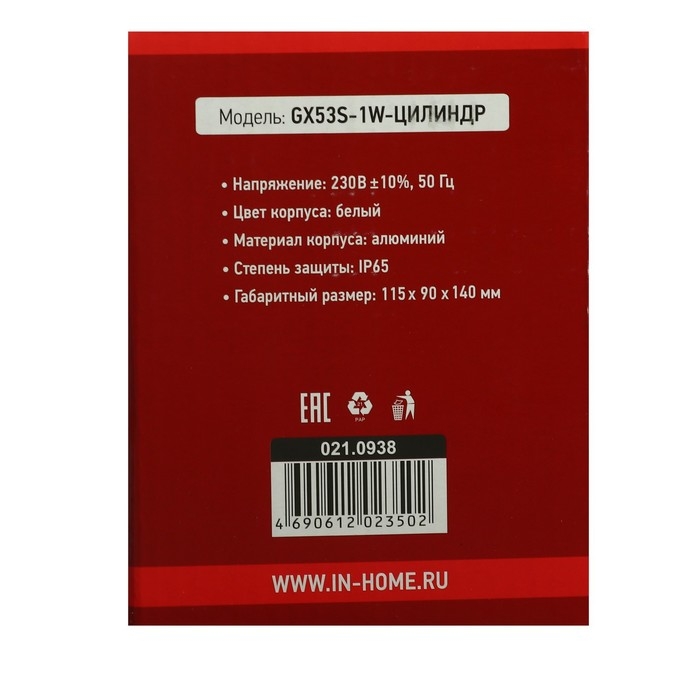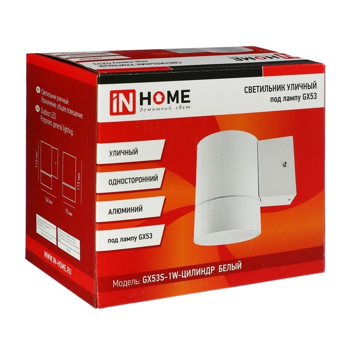 Светильник IN HOME ЦИЛИНДР, 30 Вт, GX53S-1W, IP65, архитектурный, односторонний, белый