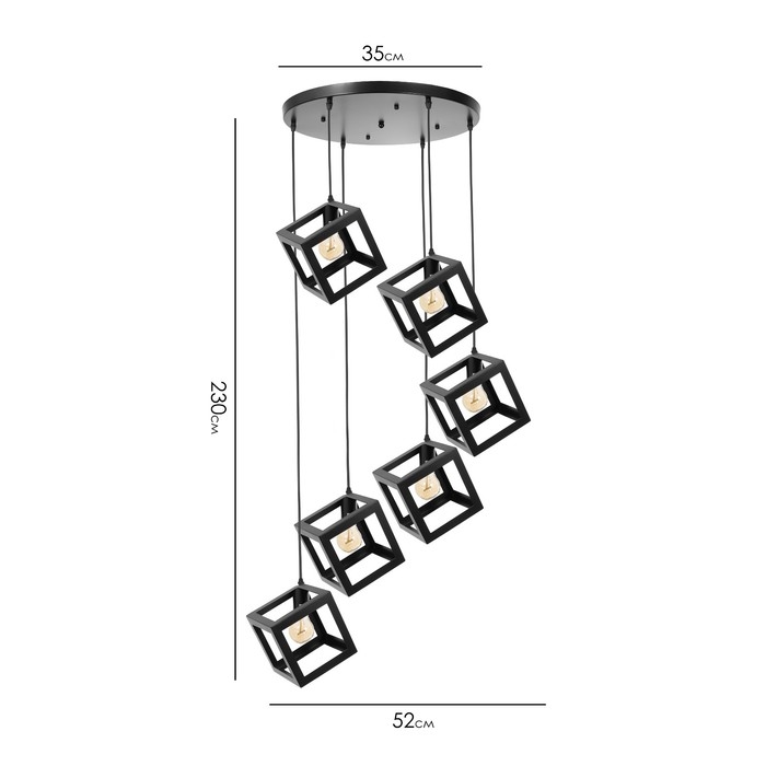 Светильник-каскад "Квадрат" 6хЕ27 40Вт черный 52х52х230 см