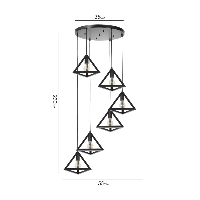 Светильник-каскад "Треугольник" 6хЕ27 40Вт черный 55х55х230 см