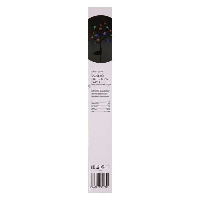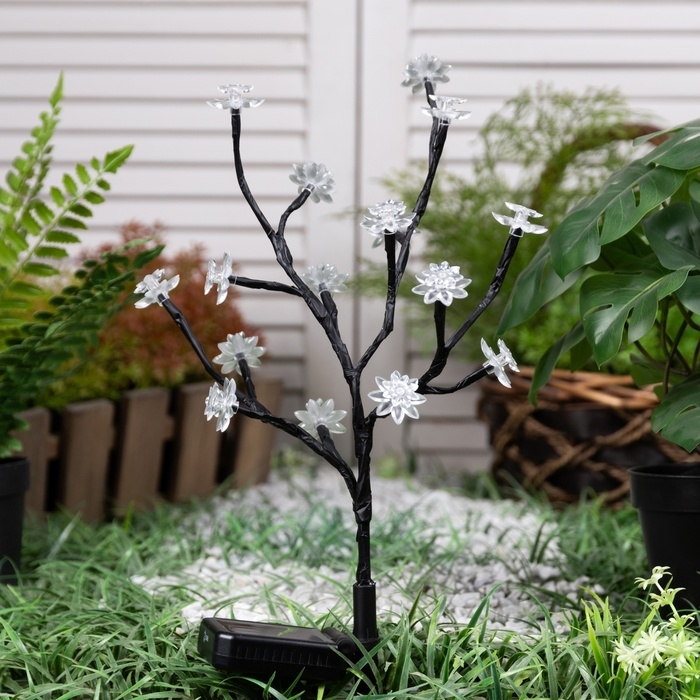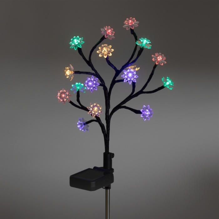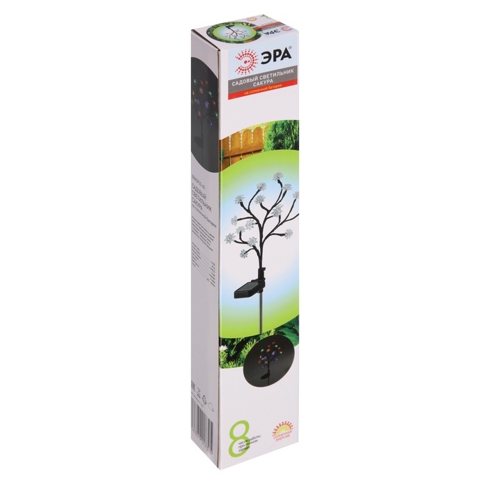 Светильник уличный ЭРА ERASF22-60 "Сакура" (арт. Б0057655) на солнечной батарее - светящееся дерево высотой 32 см для оформления сада и любой загородной территории. На каждой ветке - цветок со светодиодом. Разноцветное мягкое свечение создают 16 качественных современных LED-диодов. Такой декоративный светильник уличный продлит радостное весеннее настроение на весь сезон. Солнечная батарея встроена в стойку светильника. В течение всего светового дня компактная и мощная солнечная панель накапливает энергию. С наступлением вечера светодиодное дерево включится самостоятельно и проработает 8 часов до следующей подзарядки.