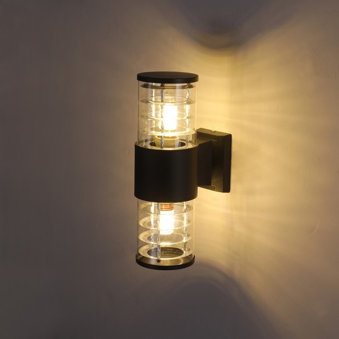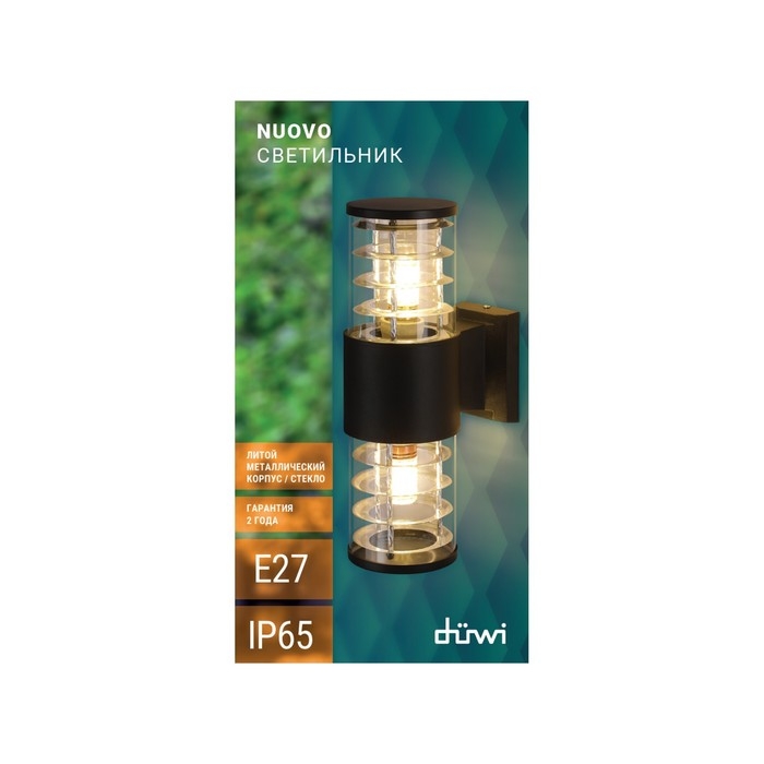 Светильник настенный, накладной Duwi TECHNO, 170х108х320мм, 2хЕ27, алюм/стекло, IP65, черный