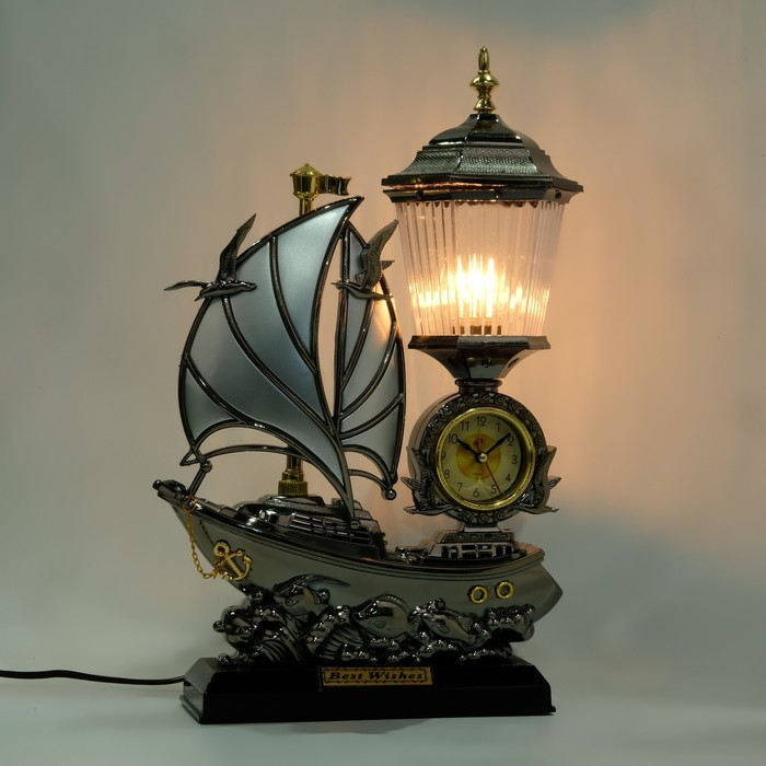 Светильник настольный, часы будильник "Эскала", 34 х 25 см