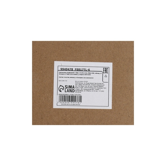 Светильник подводный с ПДУ, 13 LED, 4 Вт, IP68, RGB, таймер, от батареек 3*AAA (не в компл.) 99494