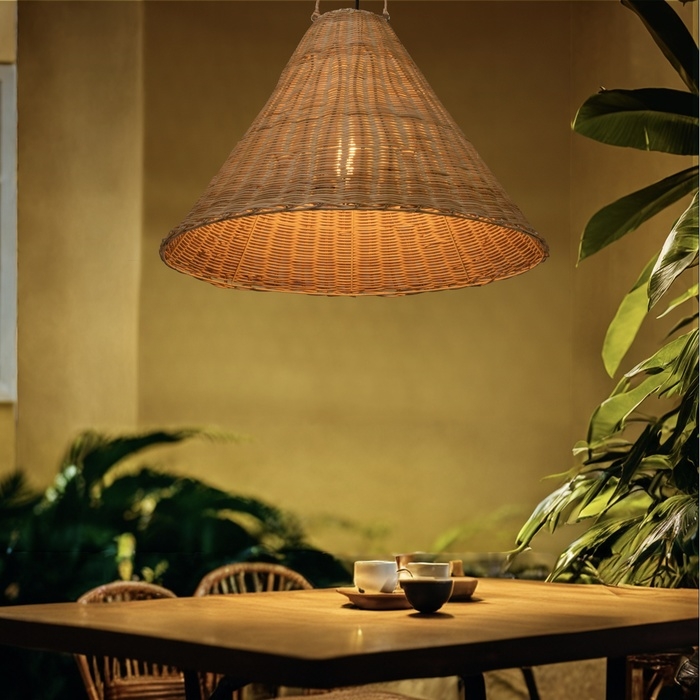 Этнический светильник ручной работы сделан из экоматериала — ротанга (очищенных и высушенных стеблей лиан).