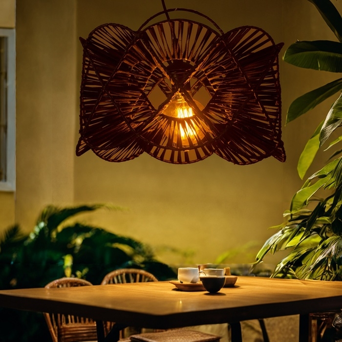 Этнический светильник ручной работы сделан из экоматериала — ротанга (очищенных и высушенных стеблей лиан).