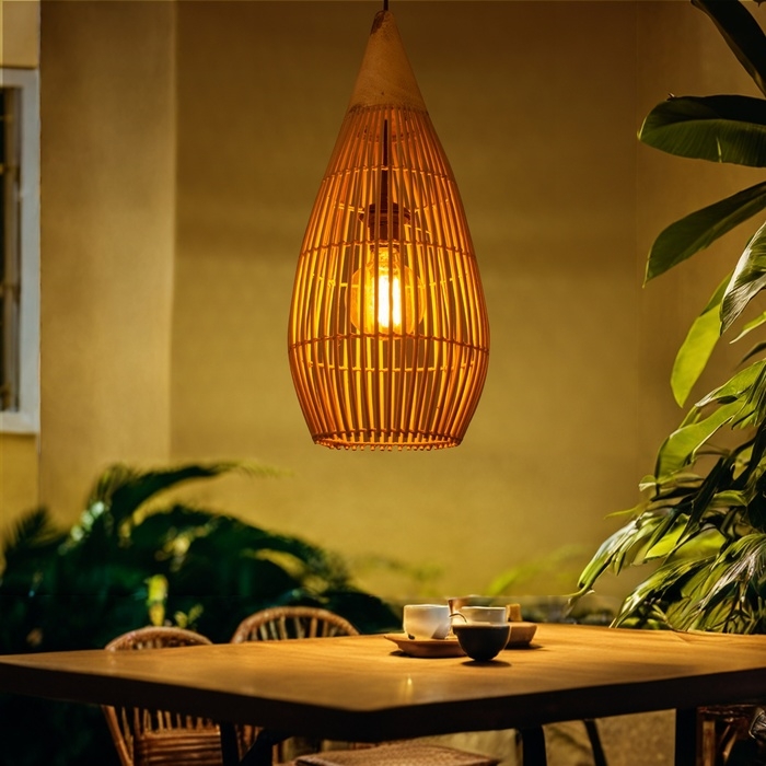 Этнический светильник ручной работы сделан из экоматериала — ротанга (очищенных и высушенных стеблей лиан).