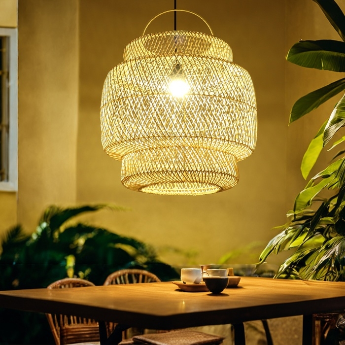 Этнический светильник ручной работы сделан из экоматериала — ротанга (очищенных и высушенных стеблей лиан).