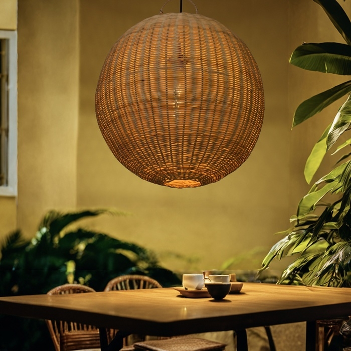 Этнический светильник ручной работы сделан из экоматериала — ротанга (очищенных и высушенных стеблей лиан).