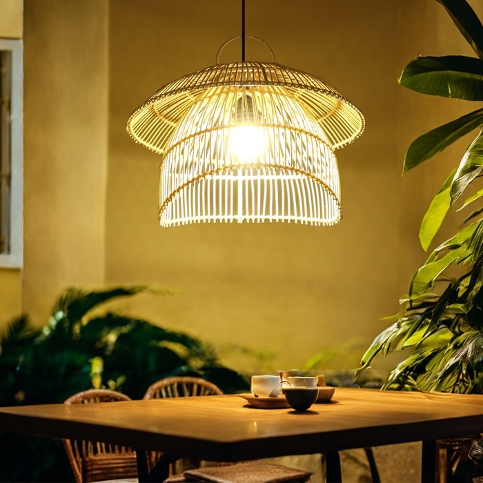 Этнический светильник ручной работы сделан из экоматериала — ротанга (очищенных и высушенных стеблей лиан).
