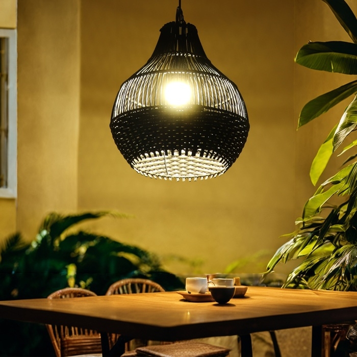 Этнический светильник ручной работы сделан из экоматериала — ротанга (очищенных и высушенных стеблей лиан).