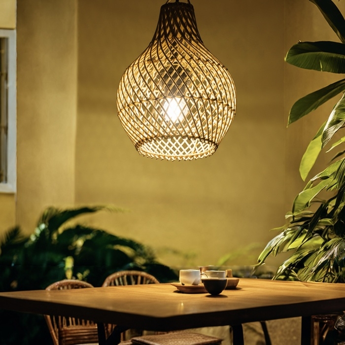 Этнический светильник ручной работы сделан из экоматериала — ротанга (очищенных и высушенных стеблей лиан).