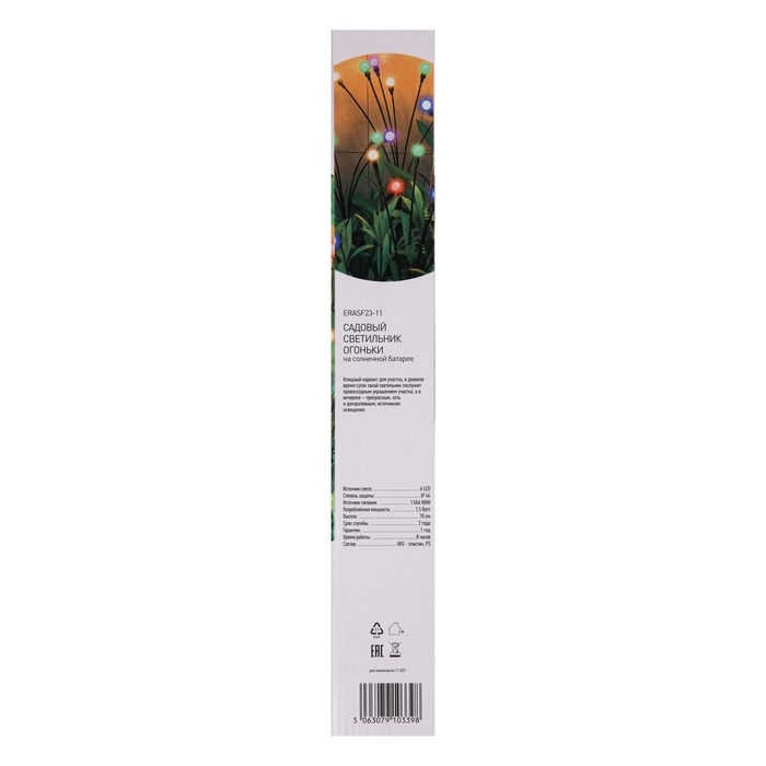 Светильник уличный Огоньки на солнечной батарее садовый высота 70 см 6 LED ЭРА ERASF23-11