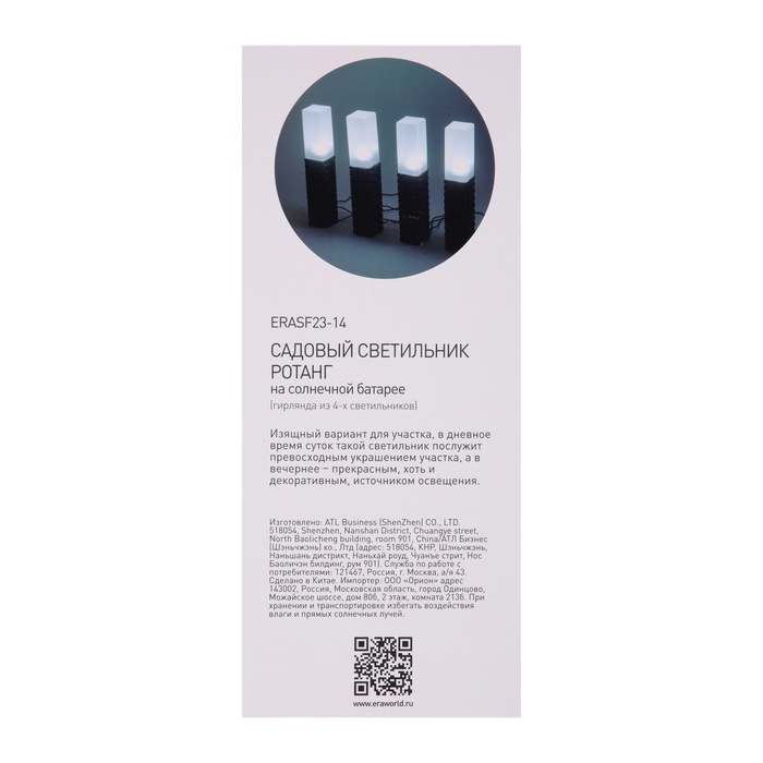 Светильник уличный ЭРА ERASF23-14 Ротанг на солнечной батарее высота 41 см 4 шт 4 LED