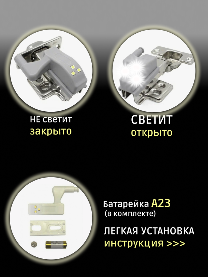 4 петли-подсветки в шкаф. Характеристики