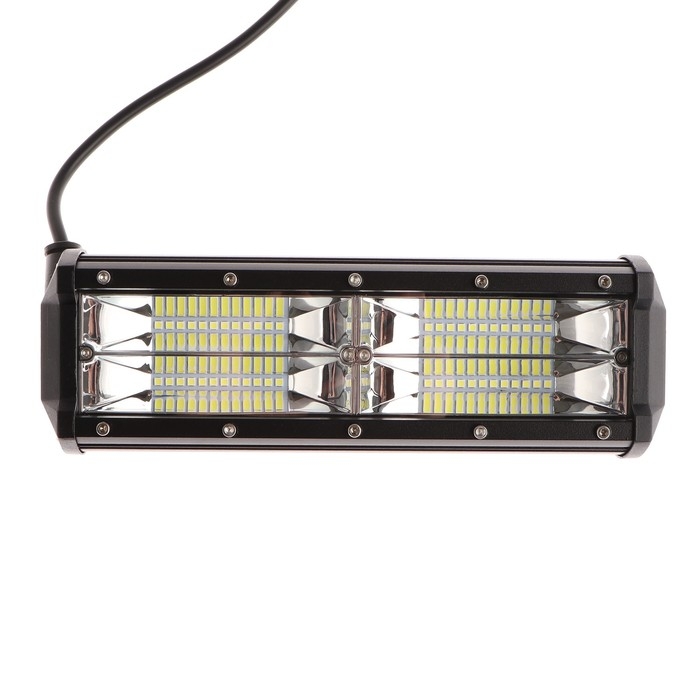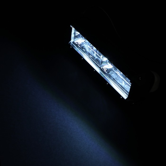 Это светодиодная балка длиной 24 сантиметра, предназначенная для установки в легковых автомобилях, грузовых автомобилях и внедорожниках. Она работает с напряжением питания от 9 до 32 вольт и имеет общую мощность 144 ватта. Световой поток составляет 3400 люменов. В комплекте идет провод длиной 40 сантиметров для удобного подключения к бортовой сети транспортного средства. Цвет света - холодный белый.
