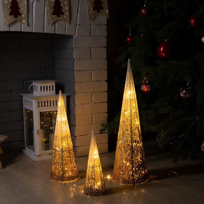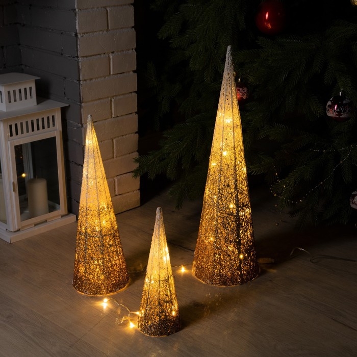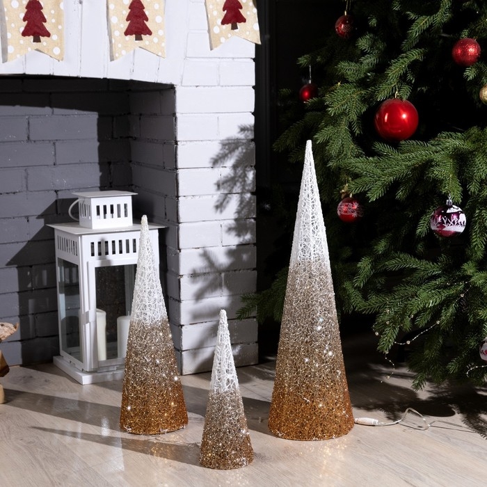 Светодиодная фигура «Бежевые конусы» 30, 45, 60 см, текстиль, металл, 220 В, свечение тёплое белое