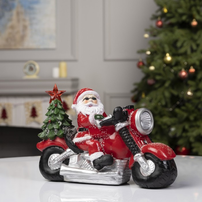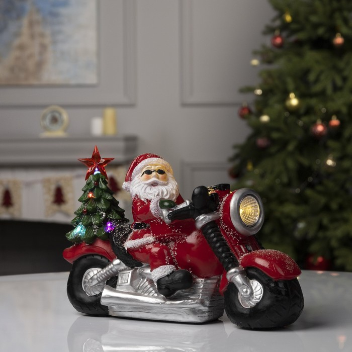 Светодиодная фигура «Дед Мороз на мотоцикле» 30 × 10 × 6 см, полистоун, батарейки ААх3 (не в комплекте), свечение мульти