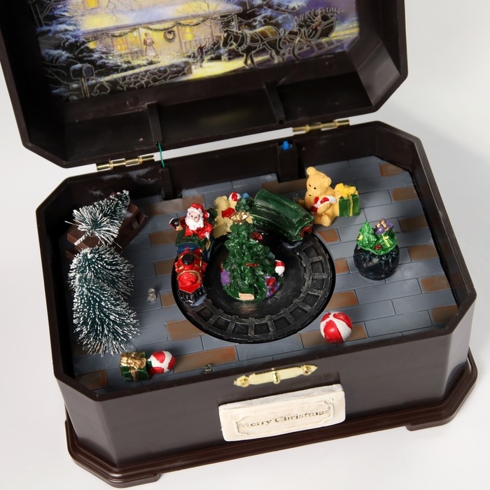 Светодиодная фигура «Дед Мороз на поезде» 31.5 × 18 × 18 см, полистоун, батарейки ААх3 (не в комплекте), USB, свечение тёплое белое