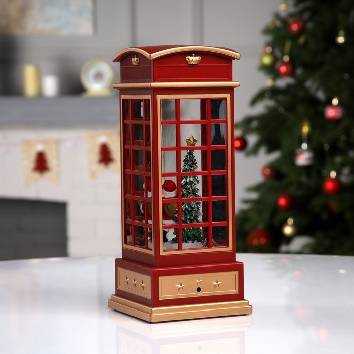 Светодиодная фигура «Дед Мороз в телефонной будке» 10.5 × 25 × 10.5 см, пластик, батарейки ААх3 (не в комплекте), USB, свечение тёплое белое