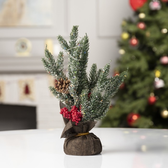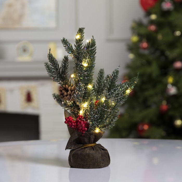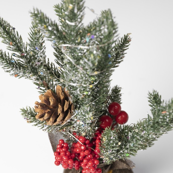 Светодиодная фигура «Ёлка с ягодами и шишками», 11.5 × 27 × 7.5 см, пластик, батарейки CR2032х2 (в комплекте), свечение тёплое белое