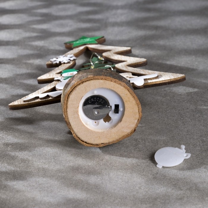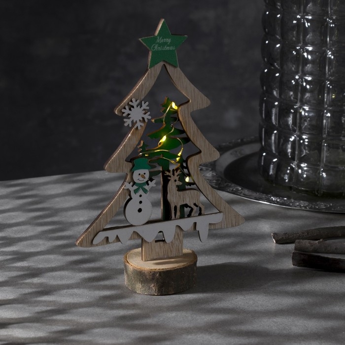 Светодиодная фигура «Ёлка со снеговиком» 13 × 20 × 5 см, дерево, батарейки CR2032х1 (в комплетке), свечение тёплое белое