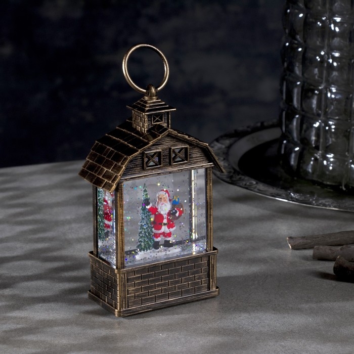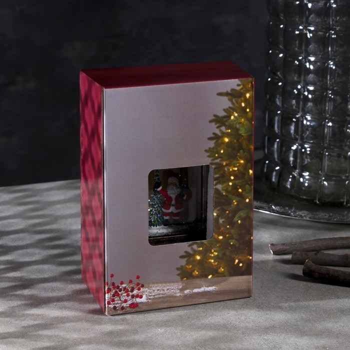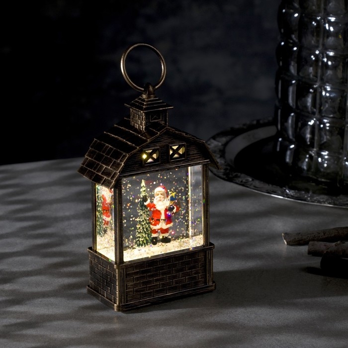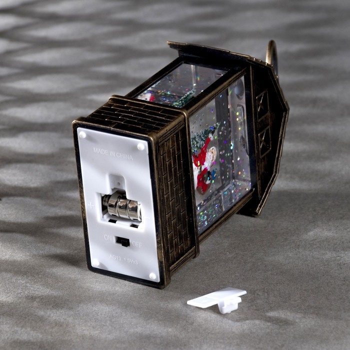 Светодиодная фигура «Фонарь с Дедом Морозом и ёлкой» 7.5 × 14 × 4.2 см, пластик, блёстки, батарейки AG13х3 (в комплекте), свечение тёплое белое