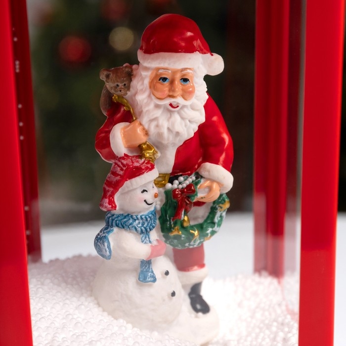 Светодиодная фигура «Фонарь с Дедом Морозом и снеговиком» 18 × 41 × 18 см, пластик, батарейки ААх3 (не в комплекте), USB, свечение белое