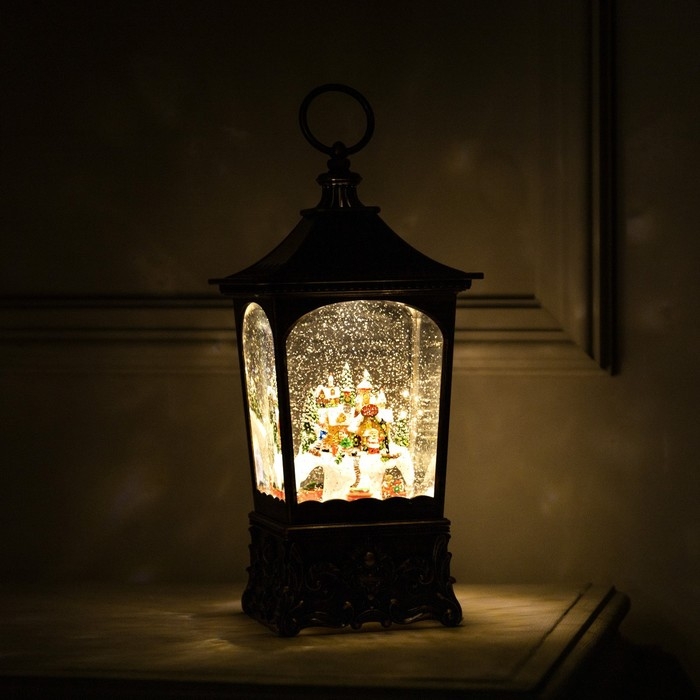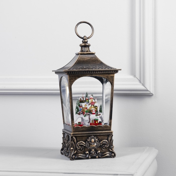Светодиодная фигура «Фонарь с новогодним городом» 13.5 × 28.5 × 13.5 см, пластик, батарейки ААх3 (не в комплекте), USB, свечение тёплое белое