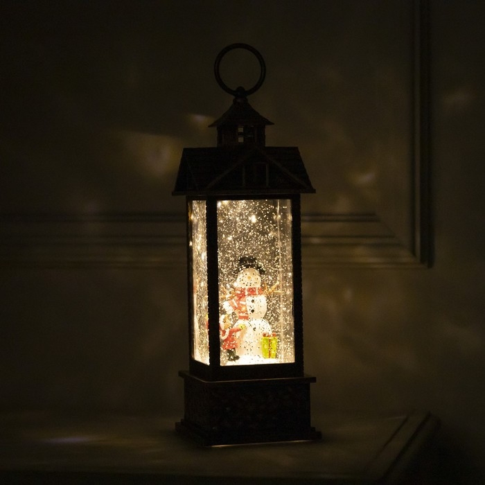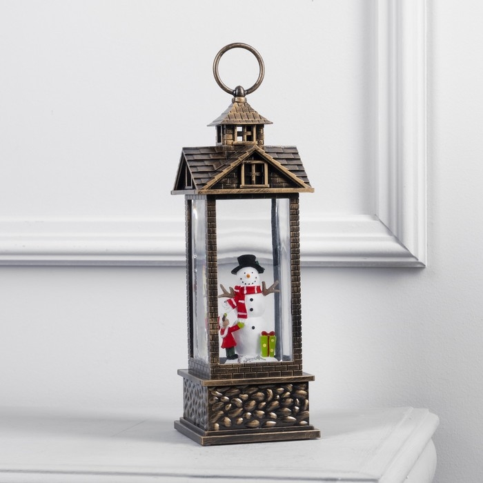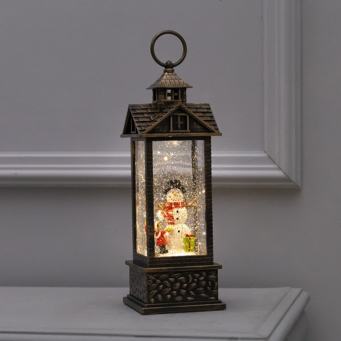 Светодиодная фигура «Фонарь со снеговиком» 10 × 30 × 10 см, пластик, батарейки ААх3 (не в комплекте), USB, свечение тёплое белое
