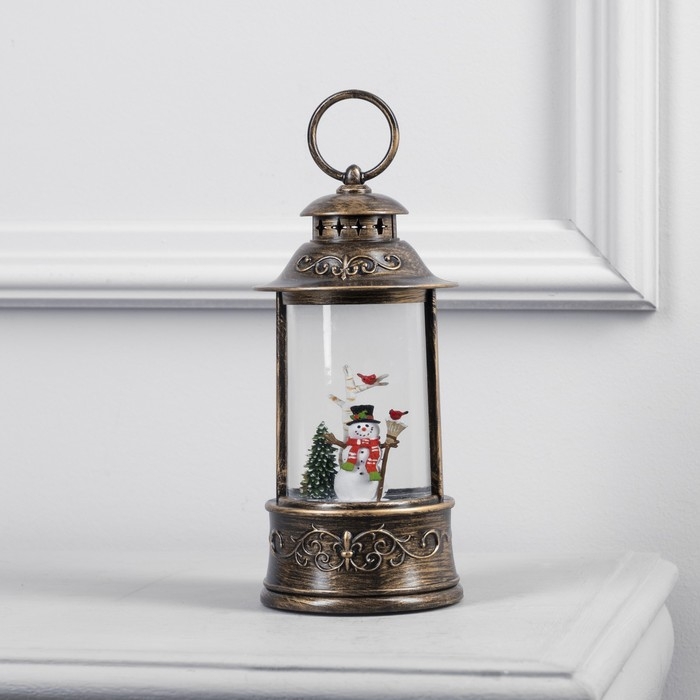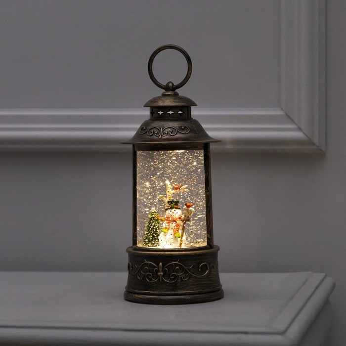 Светодиодная фигура «Фонарь со снеговиком» 11 × 21 × 11 см, пластик, батарейки ААх3 (не в комплекте), USB, свечение тёплое белое
