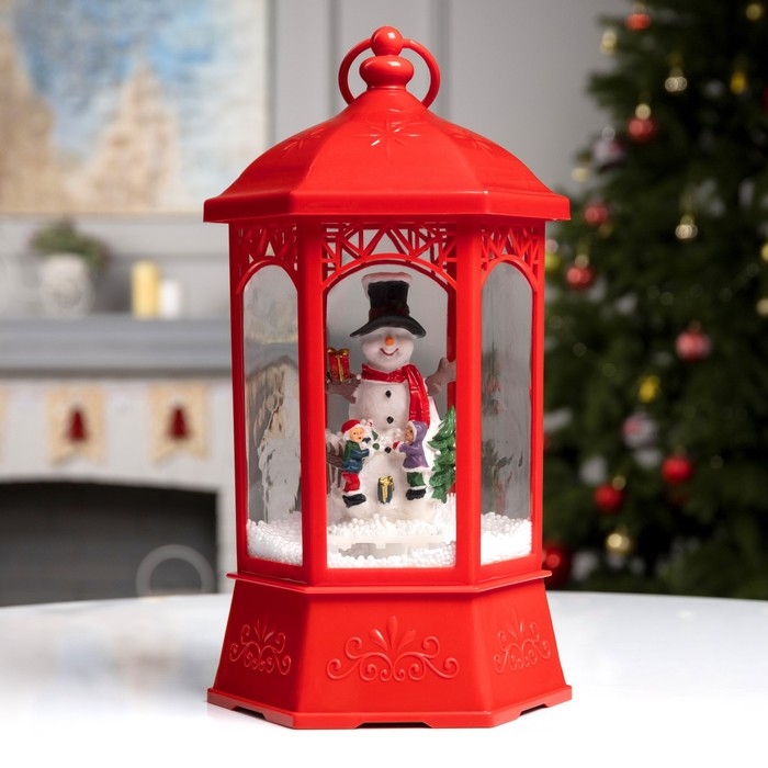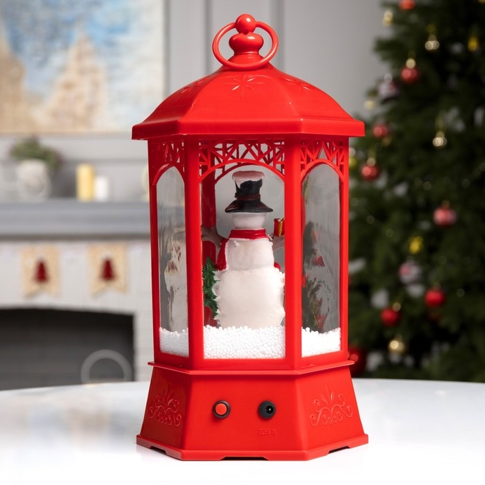 Светодиодная фигура «Фонарь со снеговиком» 20 × 27 × 20 см, пластик, батарейки ААх3 (не в комплекте), USB, свечение белое