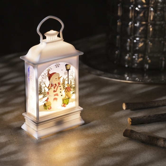 Светодиодная фигура «Фонарь со снеговиком» 7 × 13 × 3.5 см, пластик, батарейки AG13х3 (в комплекте), свечение тёплое белое