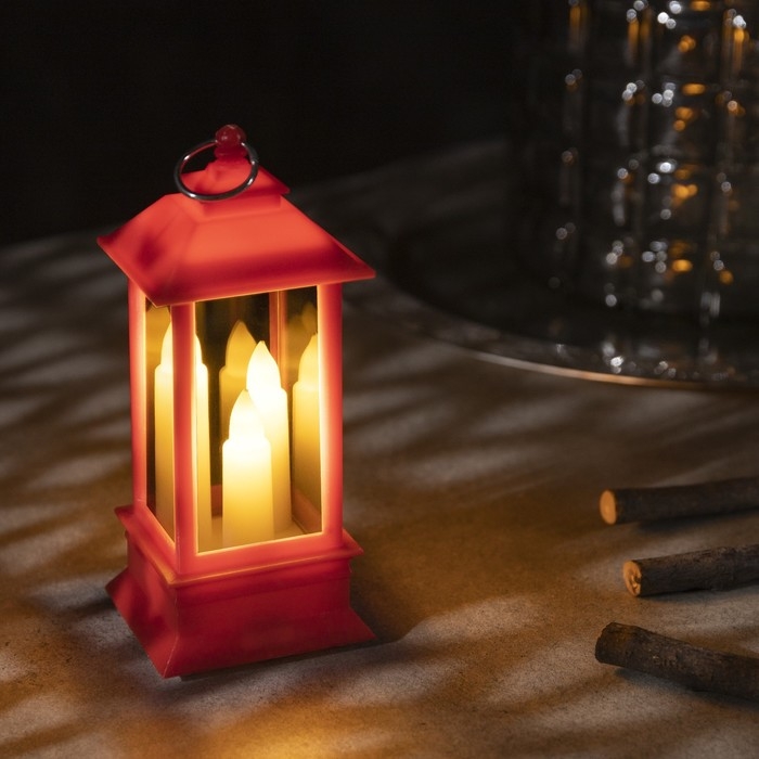 Светодиодная фигура «Красный фонарь со свечками» 5.5 × 13 × 5.5 см, пластик, батарейки AG13х3 (в комплекте), свечение тёплое белое