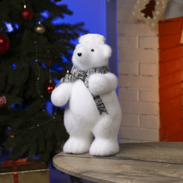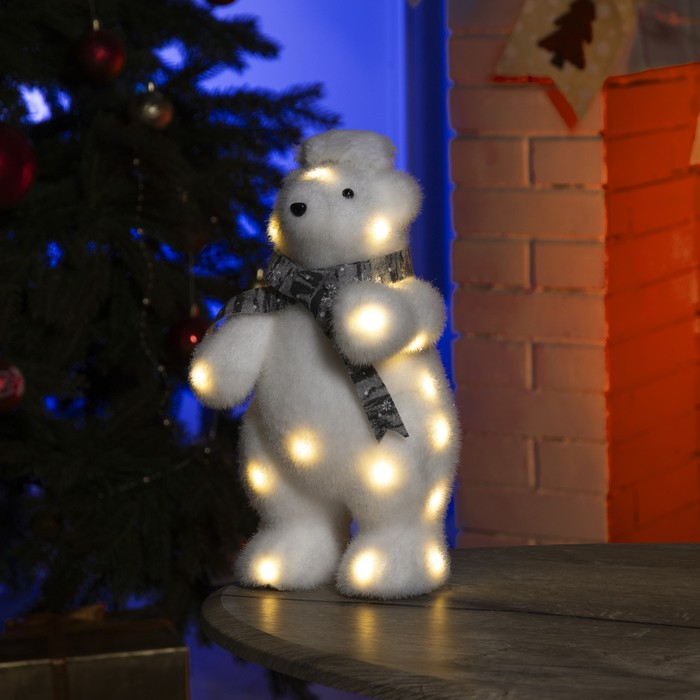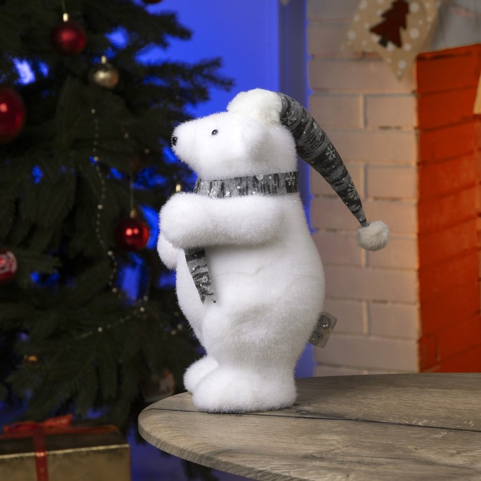 Светодиодная фигура «Медведь в шапке» 18 × 30 × 17 см, флок, батарейки ААх2 (не в комплекте), свечение тёплое белое