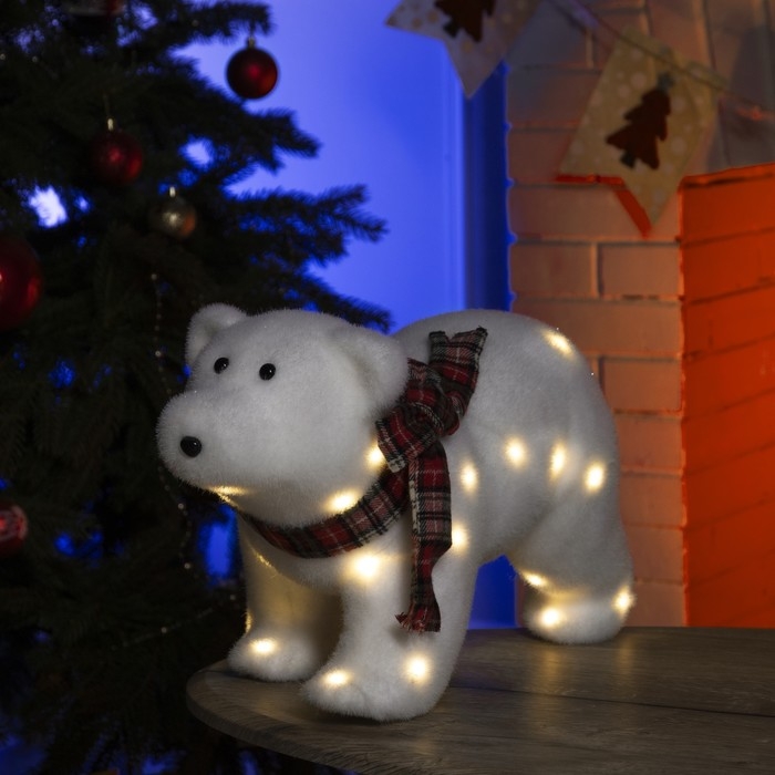 Светодиодная фигура «Мишка» 45 × 25 × 20 см, флок, батарейки ААх2 (не в комплекте), свечение тёплое белое
