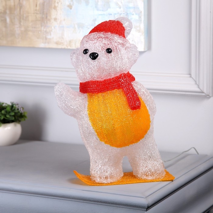 Светодиодная фигура «Мишка на доске» 25 × 35 × 19 см, акрил, 50 LED, 220 В, свечение белое