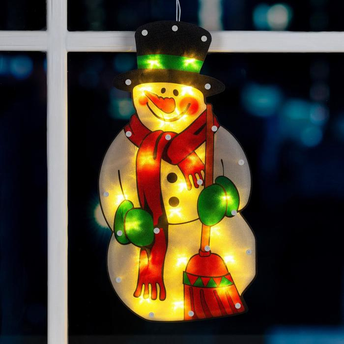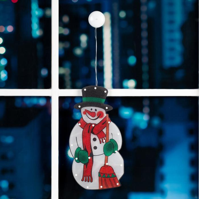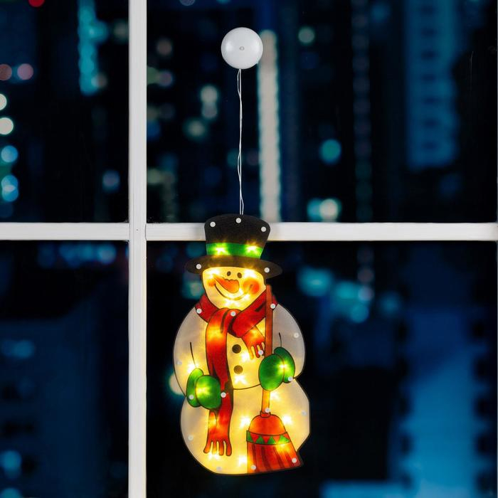 Светодиодная фигура на присоске «Снеговик» 22 × 44 см, пластик, батарейки АААх3 (не в комплекте), свечение тёплое белое