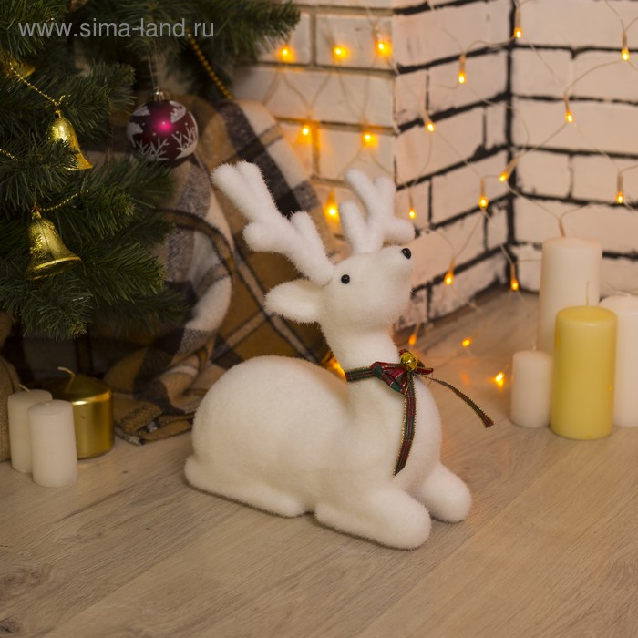 Светодиодная фигура «Олень» 25 × 29 × 13 см, флок, батарейки CR2032х2 (в комплекте), свечение тёплое белое