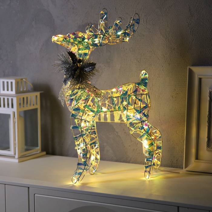 Светодиодная фигура «Олень», 30 × 52 × 14 см, текстиль, металл, 220 В, свечение тёплое белое
