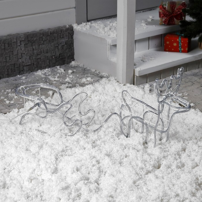 Светодиодная фигура «Олень с санями», олень: 48 × 48 × 19 см, сани: 45 × 23 × 23 см, дюралайт, 216 LED, 220 В, мерцание, свечение белое/тёплое белое