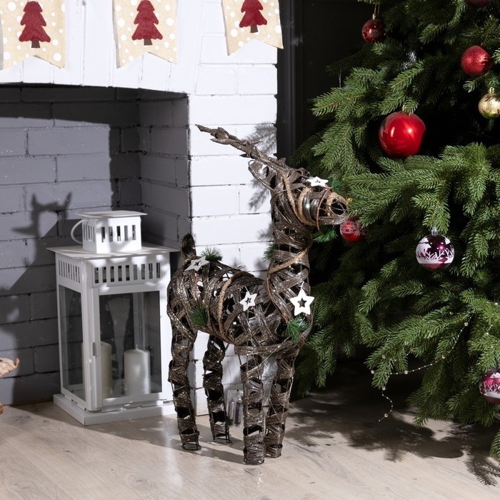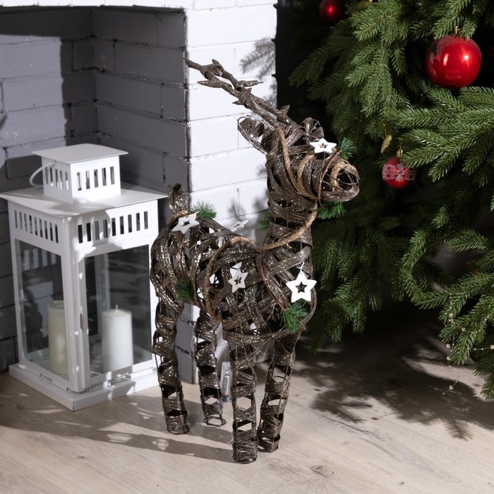 Светодиодная фигура «Плетёный олень» 44 × 65 × 15 см, металл, текстиль, батарейки ААх2 (не в комплекте), свечение тёплое белое