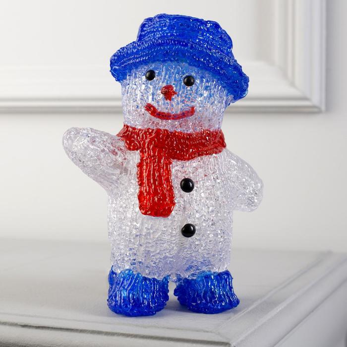 Светодиодная фигура «Приветливый снеговик» 13 × 20 × 8 см, акрил, 10 LED, батарейки ААх2 (не в комплекте), свечение мульти (RGB)